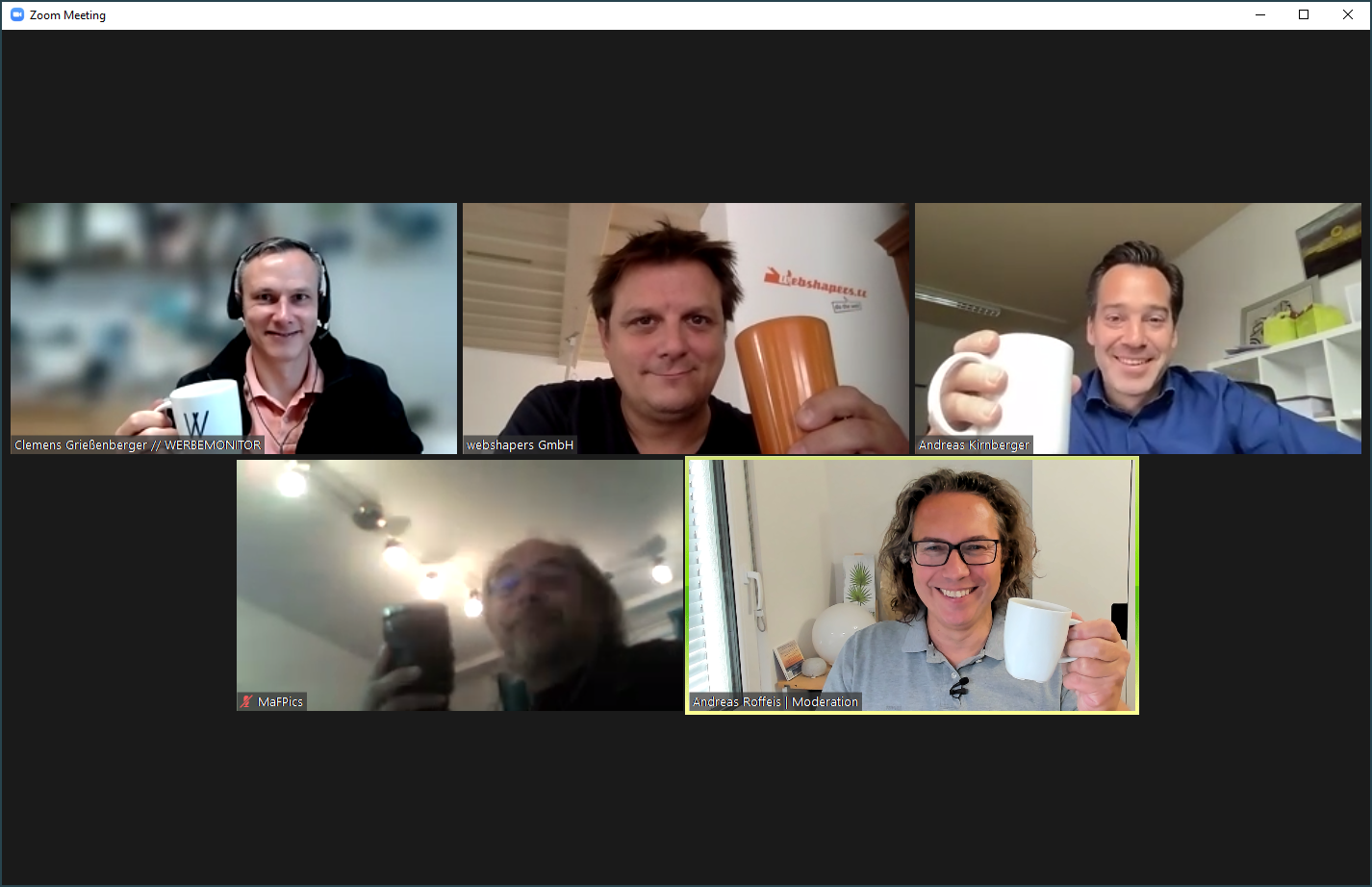 Das bewährte Motto: BYOC – Bring Your Own Coffee! Diesmal ging es um ein Update verschiedener Aktivitäten.