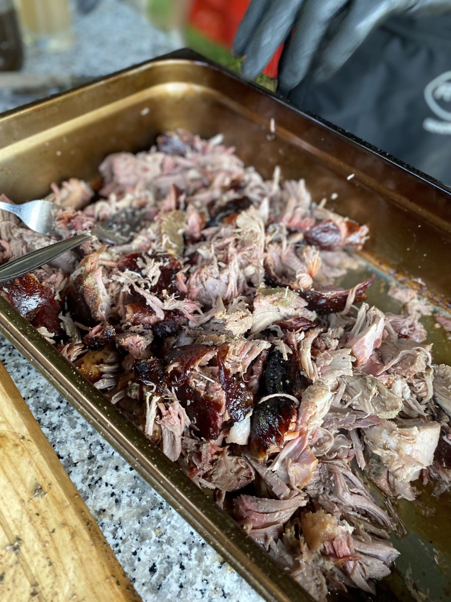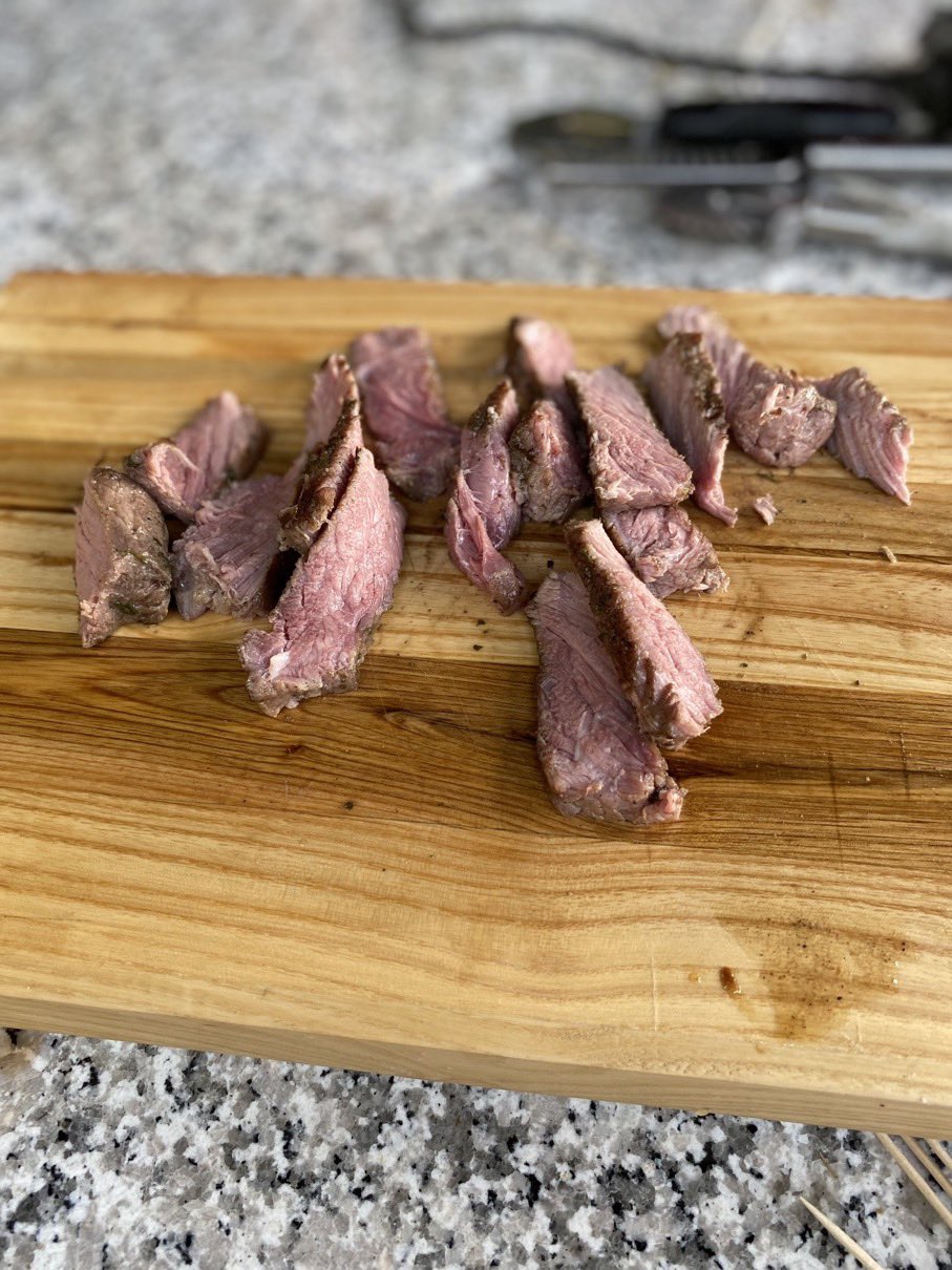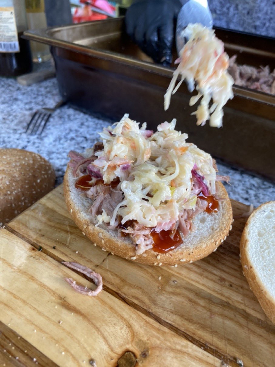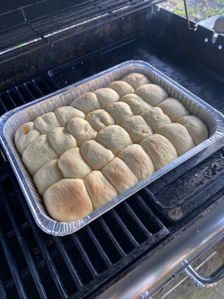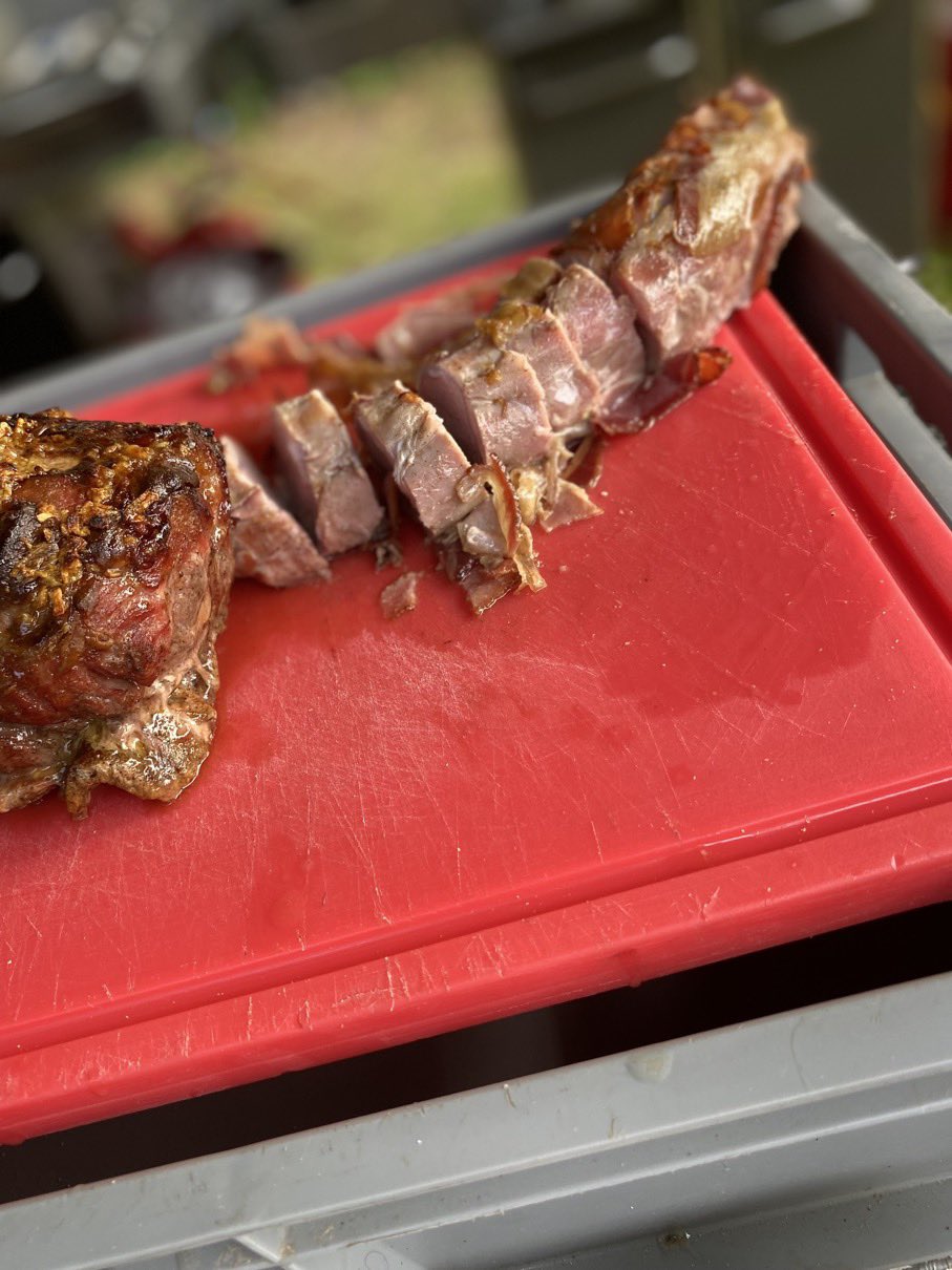 Dann ging es mit dem Zubereiten los. Speckstangerl aus einem selbstgemachten Germteig und Oliven im Speckmantel gab es zu kühlen Getränken als Entree. Die Grillprofis unterstützten und ermutigten uns zum Mitmachen. Über den Nachmittag verteilt gab es noch einen Pulled-Pork-Burger, Hühnerspießchen und ein zartes Beiried, das zuvor über zwölf Stunden Sous-vide bei 100 Grad gegart wurde und dann noch kurz am Griller brutzelte. Hinzu kamen ein Honig-Krustenbraten, der rund zwei Stunden im Griller garte, sowie ein Schweinslungenbraten in Mangalitzaspeck-Hülle. Viel Gemüse, Rösti, Maiskolben, gegrillte Käsestücke und gegrillter Rucola mit Sonnenblumenkernen und Weichkäse rundeten die verschiedenen Geschmacksrichtungen ab. Der krönende Abschluss: das Dessert. Es gab Buchteln mit Marillenmarmelade, eingelegtes Obst und Apfelsoße. Der Germteig wurde frisch hergestellt, die Apfelsoße war eine Alternative zur Vanillesoße.