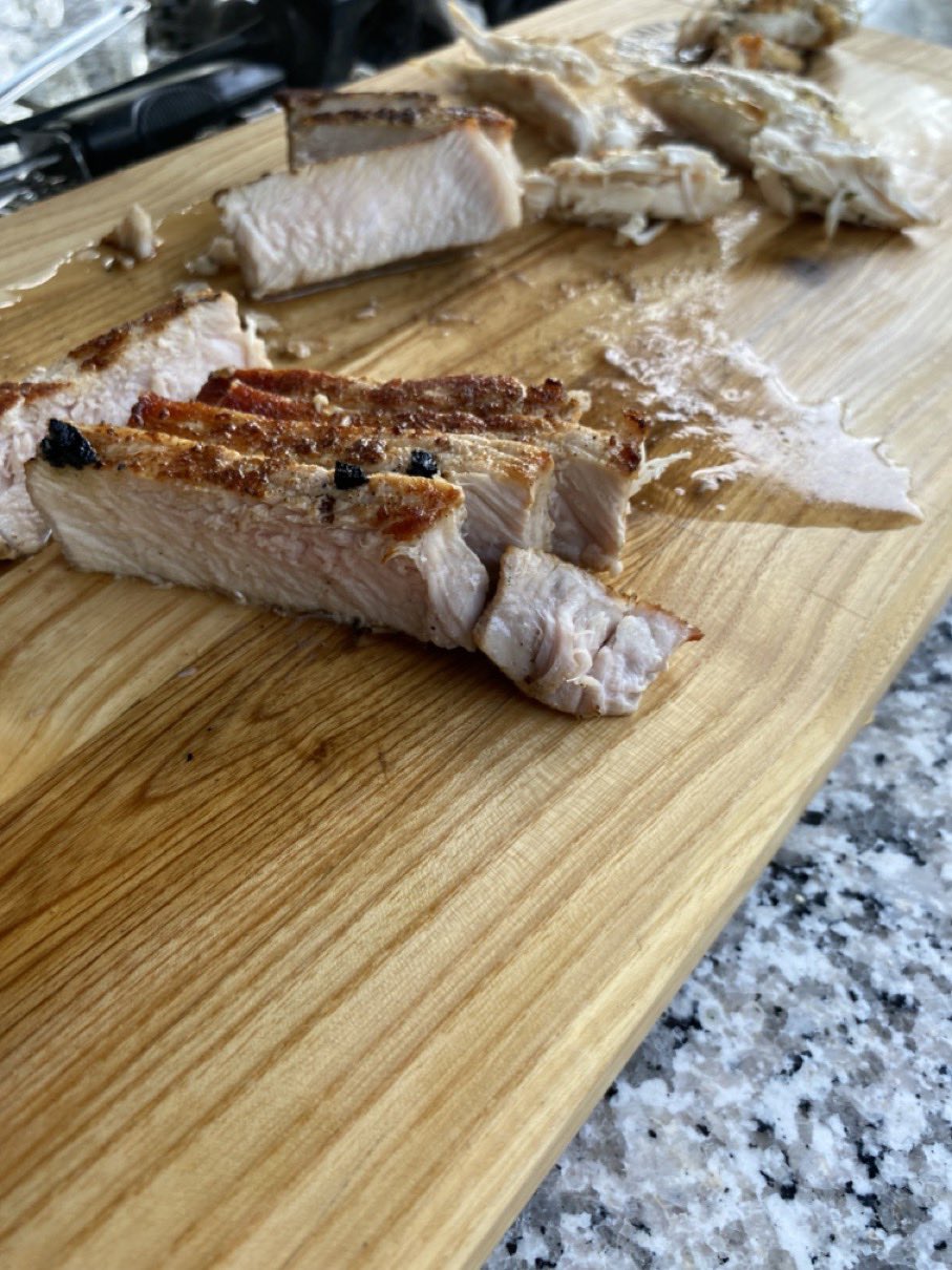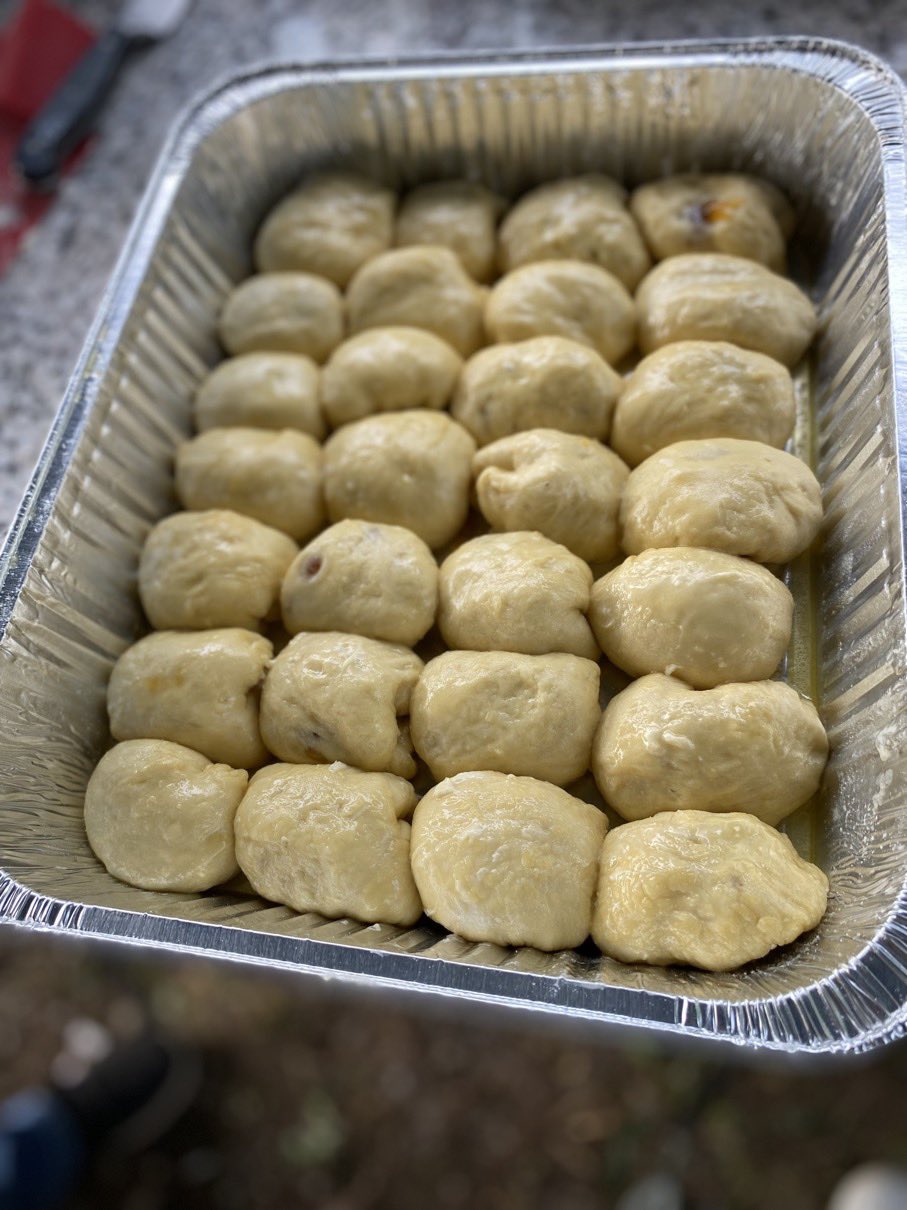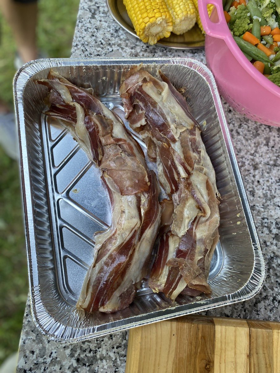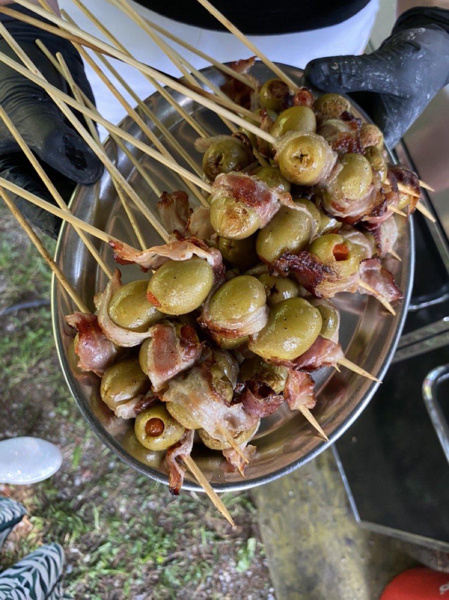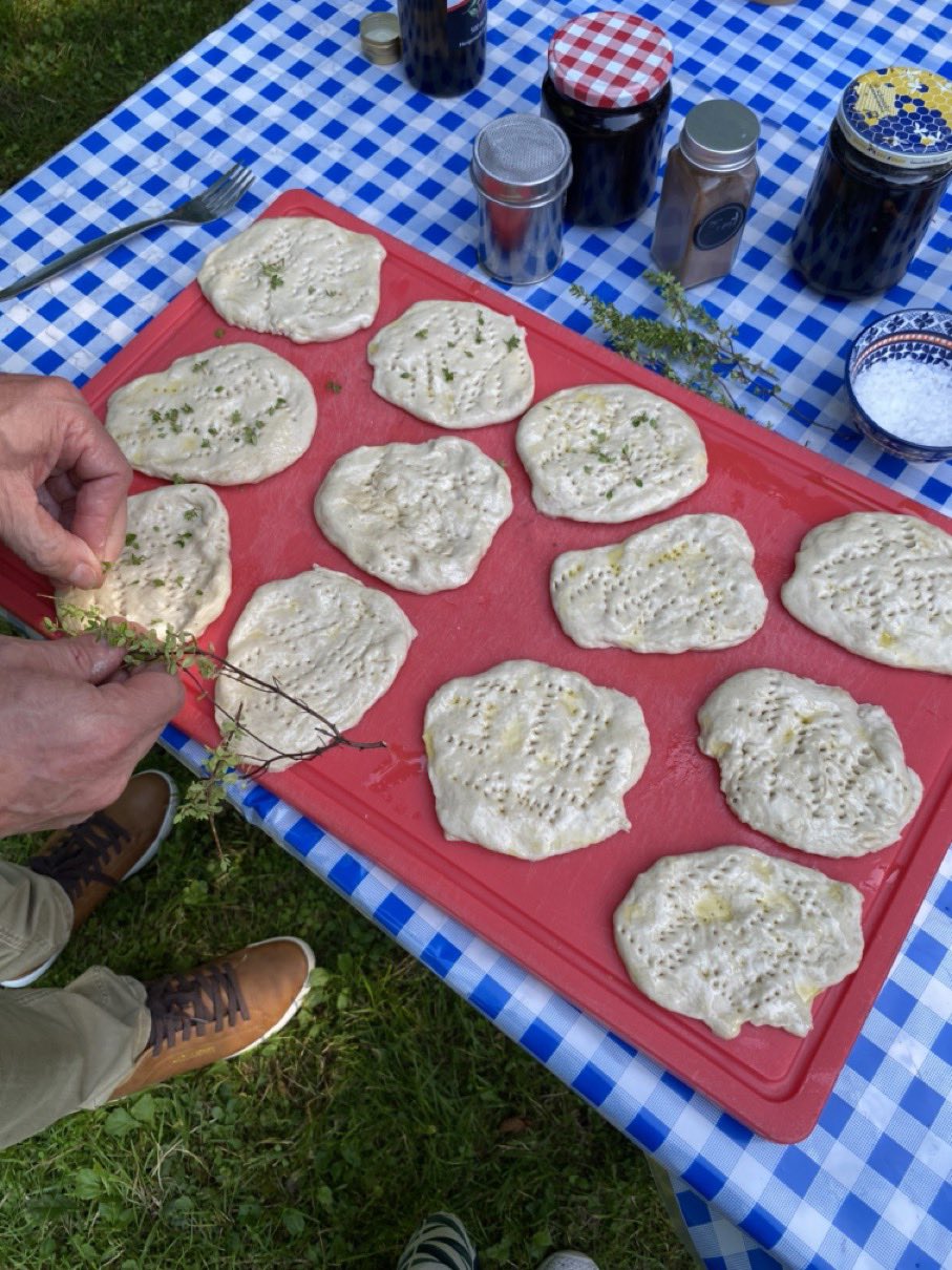 Dann ging es mit dem Zubereiten los. Speckstangerl aus einem selbstgemachten Germteig und Oliven im Speckmantel gab es zu kühlen Getränken als Entree. Die Grillprofis unterstützten und ermutigten uns zum Mitmachen. Über den Nachmittag verteilt gab es noch einen Pulled-Pork-Burger, Hühnerspießchen und ein zartes Beiried, das zuvor über zwölf Stunden Sous-vide bei 100 Grad gegart wurde und dann noch kurz am Griller brutzelte. Hinzu kamen ein Honig-Krustenbraten, der rund zwei Stunden im Griller garte, sowie ein Schweinslungenbraten in Mangalitzaspeck-Hülle. Viel Gemüse, Rösti, Maiskolben, gegrillte Käsestücke und gegrillter Rucola mit Sonnenblumenkernen und Weichkäse rundeten die verschiedenen Geschmacksrichtungen ab. Der krönende Abschluss: das Dessert. Es gab Buchteln mit Marillenmarmelade, eingelegtes Obst und Apfelsoße. Der Germteig wurde frisch hergestellt, die Apfelsoße war eine Alternative zur Vanillesoße.