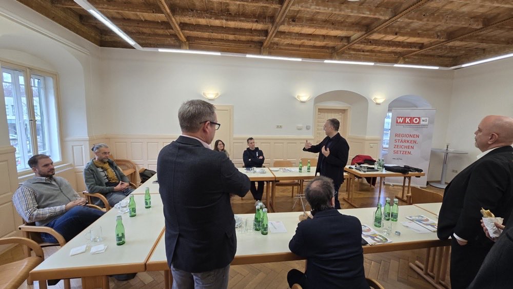 Die WKNÖ Fachgruppe Werbung und Marktkommunikation unterstützt Kreativbetriebe laufend mit Serviceangeboten, Wissensvermittlung und Weiterbildungsformaten. Das Business Breakfast in der Bezirksstelle Korneuburg/Stockerau zeigte mit einem kompakten Impuls, regionaler Vernetzung und praxisnahen Inputs für den unternehmerischen Alltag einmal mehr, wie wertvoll dieser Austausch ist. Besonders greifbar wurde der Mehrwert der Fachgruppe im anschließenden Service-Update. Alles drin, was unterstützt: Timm Uthe, Fachgruppenobmann-Stv., präsentierte die zehn Services der Fachgruppe kompakt und praxisnah für die Mitglieder. Harald Gschweidl stellte sich als Bezirksvertrauensperson (BVP) vor und lud zum gemeinsamen Austausch und Netzwerken. Mit einem Impulsvortrag zeigte Jürgen Staudinger, dass erfolgreiche Kundengewinnung nicht mehr über massenhaftes Anschreiben oder spontane Anrufe passiert, sondern über authentische Kommunikation und gelebte Werte. Sein Motto: „Kaltakquise? Nein danke.“ Wer sichtbar, persönlich und verlässlich auftritt, gewinnt Kundinnen und Kunden, ganz ohne Druck oder „Telefonlisten“. Das Business Breakfast bot kompakten Input und wertvolle Denkanstöße. Ein inspirierender Vormittag mit Impulsen, die Kreativbetriebe sofort in ihrer täglichen Praxis umsetzen können.